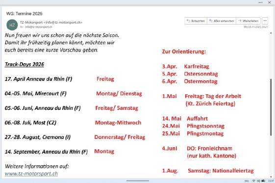 2025 Prov. Rennstreckentermine v. tz-motorsport.ch |