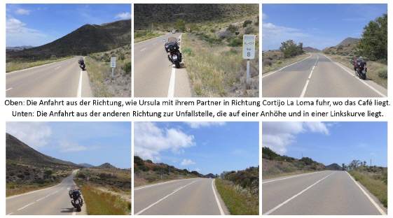 Da Urs zu keinem Zeitpunkt angehalten hatte, sondern nur so weit verlangsamt hatte, um die Strecke nach der Kurve einzusehen, können zwischen dem Abbiegen und Einschlagen keine 2 Sekunden vergangen sein. Das stützt die These, dass das Motorrad mit 200 km/h herangeflogen kam, wie auch die Verformung am Auto, direkt vor der B-Säule des viertürigen Golfs und das aufgefaltete Dach beweisen. Da sich bei einer solchen Geschwindigkeit der Fahrer ducken muss, ist der Oberkörper tief auf dem Tank und seine Sicht eingeschränkt. Es ist möglich, dass er die Gefahr zu einem Zeitpunkt erkannte, wo er nicht mehr reagieren konnte. Die Kombination Kuppe und Kurve, und dies gleich aus zweifacher Richtung, wurde zur Falle, unausweichlich: Zwei Menschen mussten sterben, innert Bruchteilen einer Sekunde. Durch die Wucht des Aufpralls war Ursula auf der Stelle tot. Der Motorradfahrer flog 20, 30 Meter ins Gelände, wo er auch innert Kürze starb, ohne das Bewusstsein zu erlangen.