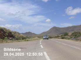 Der Flug nach Madrid verlief nach Plan, die Viertelstunde, die wir später abflogen, konnten aufgrund der Windverhältnisse leicht wieder aufgeholt werden. Diesmal hatte ich Glück, war doch die Ankunft wie auch der Abflug im gleichen Terminal angesiedelt, ich musste etwa eineinhalb Stunden überbrücken. Ich hatte den zweitgünstigsten Flug gewählt, was mir zugutekam: Was niemand wissen konnte, war ein totaler Elektrizitätsausfall und Internetausfall um 12 Uhr 30 auf der ganzen iberischen Halbinsel bis in den Süden Frankreichs. Da war ich bereits auf dem Flug nach Almeria, welcher für mich etwas sonderbar anmutete: Wie in alten Zeiten war die Passagiertüre hinter dem Cockpit nach unten geklappt und das Flugzeug musste über eine Leiter-ähnliche Treppe vom Rollfeld erklettert werden. Grosse Gepäckstücke wurden den Passagieren abgenommen und fortwährend in den «Bauch» unterhalb der Kabine hineingeschoben. Der Flug wurde im Namen der Iberia von einer lokalen Fluggesellschaft «Air Nostrum» ausgerichtet. Genauso erfolgte der Ausstieg in Almeria, wo wir über das Rollfeld zum Terminalgebäude liefen – es scheint ein sehr lokaler Flughafen zu sein. |