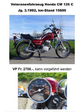 Im Moment bin ich daran, meine Fahrschulmaschinen «ab-zu-verkaufen»: Mit Ausnahme meiner privaten Maschinen (inkl. einer Honda CM125 C «Chopper» für Schnupperstunden) stehen alle zum Verkauf! (Liste mit den entsprechenden Preisen und Angaben ist in Vorbereitung)