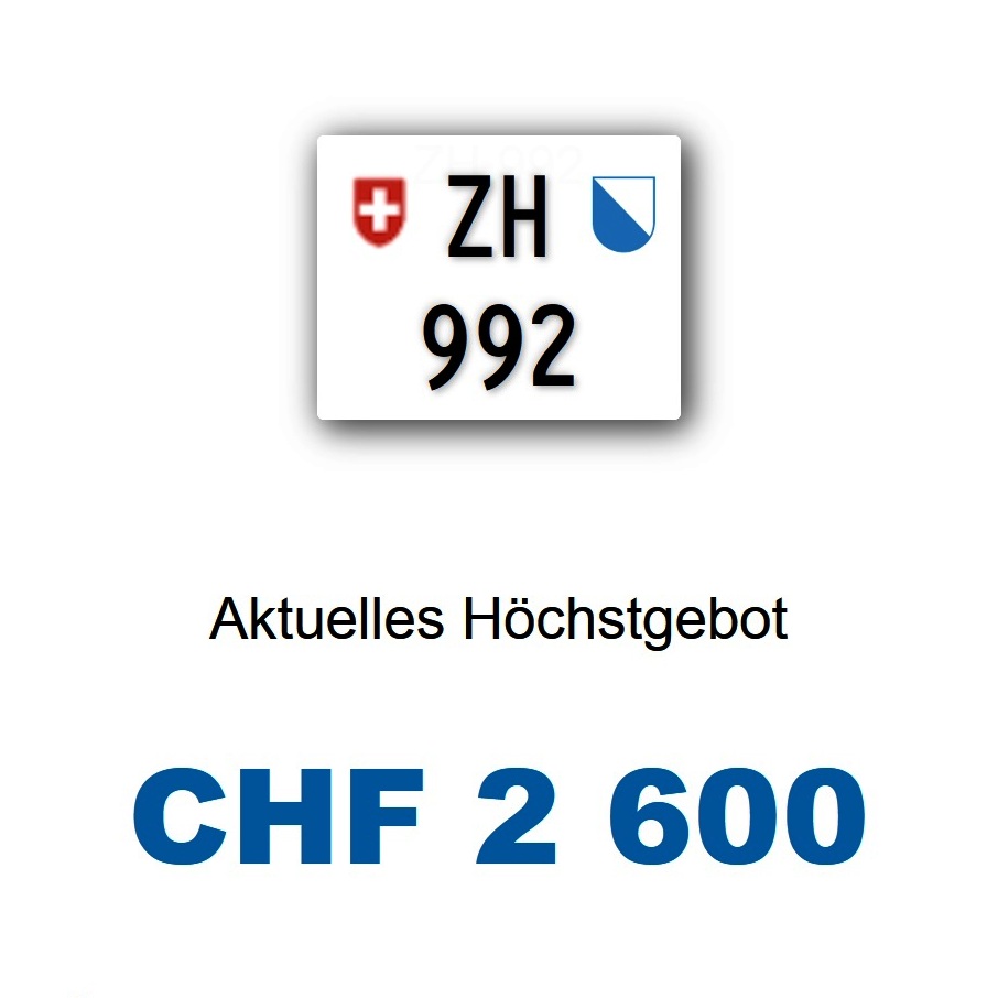 Am 3.4.2019 wurde im Kanton Zürich das zweite 3-stellige TÖFF-Nummernschild ausgegeben - in der Auktion dem Höchstbietenden: Verfolge den Verlauf «ZH 777» bei diesem Schild, welches immerhin einen Erlös von Fr. 6'300.- erzielte -, heute erzielen 3-stellige Autonummern jeweils um die 20'000 Franken - mehr dazu hier