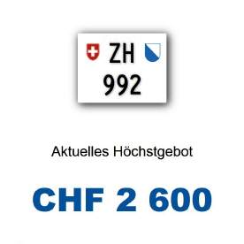 Am 01.01.2024 wurde im Kanton Zürich das nächste 3-stellige TÖFF-Nummernschild ausgegeben - in der Auktion ging es zum guten Preis von Fr. 3300.- weg! Verfolge den Verlauf vom «ZH 990