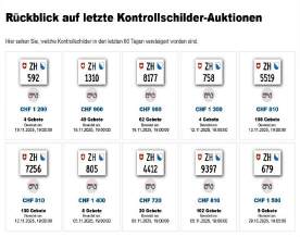 Am 7.8.2019 wurde im Kanton Zürich das elfte 3-stellige TÖFF-Nummernschild ausgegeben - in der Auktion dem Höchstbietenden: Verfolge den Verlauf «ZH 810
