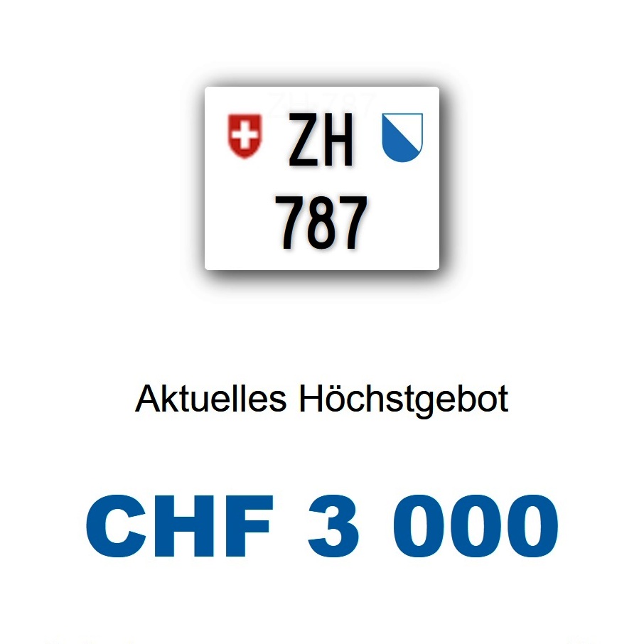 Am 14.01.2026 wird im Kanton Zürich das nächste 3-stellige TÖFF-Nummernschild ausgegeben - in der Auktion ging es zum sehr guten Preis von Fr. 3000.- weg! Verfolge den Verlauf vom «ZH 787