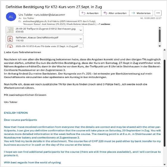 E-Mail vom 12.Aug. 2025 wegen weiteren KT-Kursen