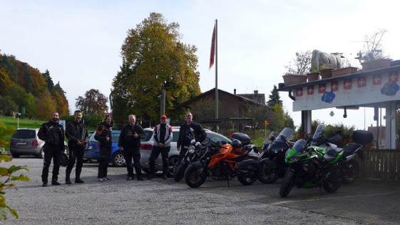Am Sonntag, 19.Okt. fand die Schlussfahrt der "Sunset-Riders" statt. Der "Präsi himself" amtete als Tourguide, und er setzte sie um 10 Uhr für den Start und 13 Uhr mit dem Ziel, dem Mittagessen im Restaurant an. Es waren nur 5 Teilnehmende, aber der Tag startete recht kühl und viel wärmer sollte es auch nicht werden. Als Teilnehmer aber muss ich sagen, dass, richtig angezogen, es ein unwahrscheinlich angenehmer Töfftag war: Fast kein Verkehr (und noch viel weniger auf den gewählten kleinen Strässchen), wunderbare Sicht auf die farbigen Herbstwälder, hervorragende Strassenverhältnisse von ein paar landwirtschaftlich bedingten saisonalen Verschmutzungen und Kurven-à-gogo-Strecken, tolle Töffkollegen und gute Gespräche bei Pausen und Mittagessen, und danach ... |