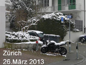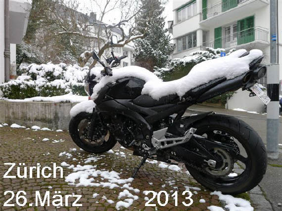 Die SWISS-MOTO fand in diesem Jahr eine Woche später statt als andere Jahre. So fiel sie ans Ende der Zürcher Sportwochen. Während es in den letzten Jahren oft frühlingshaft zu und her ging, zeigte sich der Winter selbst in den Ausstellungstagen von der harten Seite. Draussen war es kalt und es schneite immer wieder. So konnte deswegen am Sonntag nur die letzte Freestyle-Vorführung durchgeführt werden. Seither gab es kaum einen Tag, an dem es nicht geschneit hat. Ich musste immer wieder Fahrstunden absagen wegen der winterlichen Wetterverhältnisse. Inzwischen war auch astrologisch Frühling, nur das Wetter wollte und wollte nicht ändern. |
