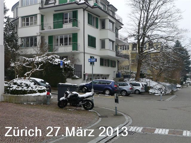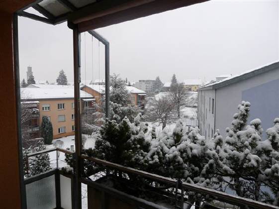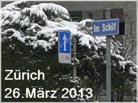 So hatte ich bei den winterlichen Verhältnissen nach einem passablen Samstag, an welchem ich zum ersten Mal vier (!) Kunden bedienen durfte, für die neue Woche ebenfalls 4 Kunden am Dienstag geplant. Wegen der kalten Morgentemperaturen erst ab 9 Uhr. Doch es kam anders: Beim Aufstehen am Dienstag, 26. März bot sich auf meinem Balkon in Thalwil folgendes Bild: Tiefster Winter, so weit das Auge reicht. Also musste ich einmal mehr allen Fahrschülern an diesem Tag absagen. |