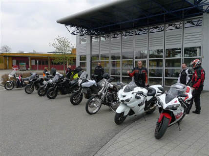 Am Samstag, dem 14.April trafen sich 7 Kursteilnehmer für den Kurventechnik-Kurs 2 im Rest. Hörnli in Knonau. 6 trafen rechtzeitig ein, der 7.Teilnehmer, der extra aus Paris (!) angereist war, meldete sich kurz nach 8 Uhr. Auf dem Weg nach Knonau war er verunglückt, ein paar Kilometer vor dem Treffpunkt. |