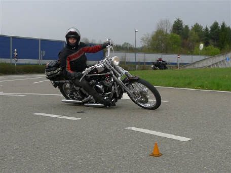 Leo mit der Harley im Schräglagentraining |