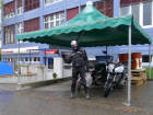 Es war trocken, als wir um halb 10 von Knonau aus zum Kursgelände auf dem Strassenverkehrsamt Zug in Steinhausen fuhren. Es war auch immer noch trocken, als wir nach den vielen verschiedenen Kurvenübungen (alles, was gefährlich war, hatten wir auf den Morgen umprogrammiert) um halb ein Uhr zurück zum Mittagessen nach Knonau fuhren – es war immer noch trocken, als wir am Nachmittag, nach dem Besuch der Unfallstelle zum zweiten Mal in Steinhausen ankamen und erst, als der Kurs mit allen Fahrübungen fertig war, inklusive den individuellen Bremsübungen, und wir bereits zusammengepackt hatten und fertig waren zum Aufbrechen, begann es ganz leicht zu nieseln! Was für ein geschenkter Töff-Tag: Alle hatten mit Dauerregen gerechnet, ich habe beruhigt, dass es selten bei uns ohne Unterbruch einen ganzen Tag regnet – und dann hält das Wetter den Regen zurück bis zum wirklichen Kursende. |