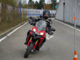 Da ich das Areal des Strassenverkehrsamtes mieten muss, brauche ich mindestens 6 zahlende TN, um den Kurs durchzuführen. Meistens findet er vor dem WB-Kurs in Interlaken statt, wobei Oster- bzw. Pfingstsamstag bisher eher ein Handicap war. Aufgrund der katastrophalen Wettersituation um den 20. April musste der Kurs in Interlaken kurzfristig abgesagt werden. Als ich dann eine Woche vor Pfingstsamstag erstmals die srf-meteo konsultierte, erlitt ich einen Schock – ging aber ohne Notarzt über die Bühne – im Hinblick auf das KT2-Programm: Nach dem KT1-Kurs, in welchem es in erster Linie um eine saubere Kurvenfahrtechnik (Kurvenlinie, Blicktechnik und Geschwindigkeitsgestaltung) geht, sollten im Kurs 2 die fahrer- und maschinentechnischen Reserven erkundet werden. Nasse Fahrbahn ist da ein brutaler Spielverderber, im Gegensatz zum KT1, wo oft die Teilnehmenden im Regen schräger gefahren sind als je zuvor.