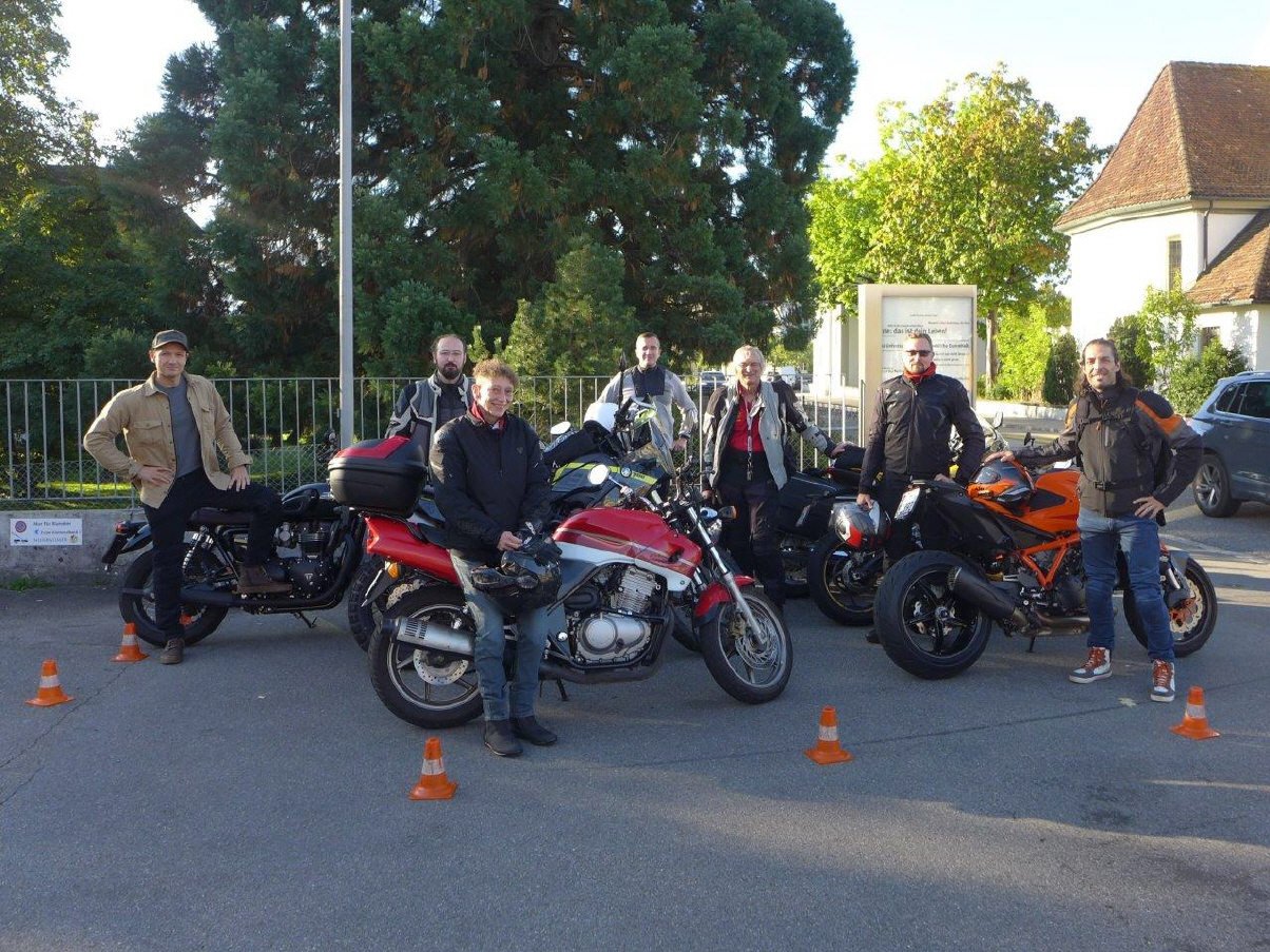 Es war eine Zitter-Partie, lange sah es nicht aus, dass ich die 6 TN zusammenbekommen würde: Schlussendlich wurden es sogar 7! Doch leider fühlte sich an diesem Morgen einer der TN nicht wohl, verzichtete auf seine Teilnahme, so dass der Kurs also mit 6 TN stattfand. Nach dem Morgenprogramm wechselten wir zum Zmittag ins Rest. Freimann. Dieses idyllische, alt-ehrwürdige Lokal allein ist der Besuch wert, genauso wie die Küche: Man isst dort hervorragend, und trotz der Lage günstig. Hier geht's zur Webseite des empfehlenswerten Lokals. Am Nachmittag bewegten wir uns nach wenigen Bremsübungen im schnellen Slalom mit den "Slalomstangen", bevor wir uns in den Realverkehr begaben. In Steinhausen liessen wir den Kurs ausklingen, bei schönstem Wetter in einer Gartenbeiz. Eine rundum gelungene Sache mit zufriedenen Teilnehmern, die nun für die Fahr-Saison bereit sind.