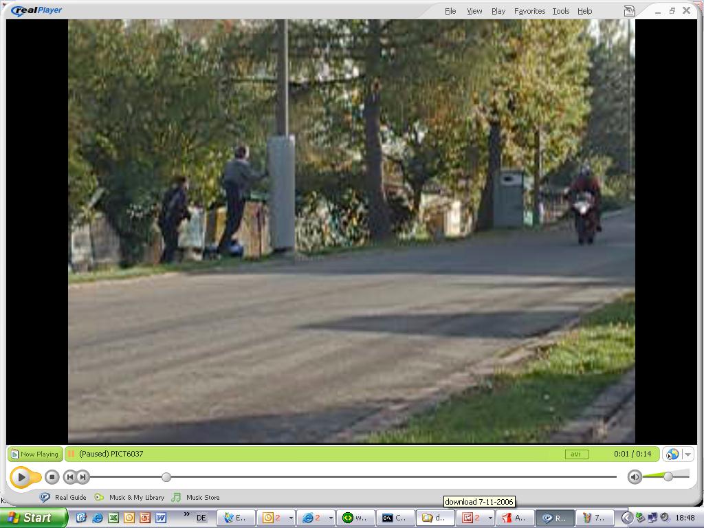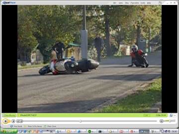 Auch in dieser Sequenz wurde PROGRESSIV gebremst: Aus einer SUPER-Bremsung wurde ein Sturz. Der Prüfungskandidat wusste NICHT, weshalb er gestürzt war! Selbst das einklappende Rad liess ihn die Bremse nicht lösen. Ihm ist DANK GUTER KLEIDUNG nichts weiteres passiert. (auch KEIN Kandidat aus meiner Fahrschule!!!) |