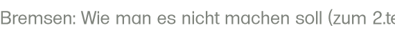 Von wegen Notbremsen: Kürzlich musste ich eine Art Notbremsung machen, da das Auto vor mir während einer halben Sekunde Unaufmerksamkeit meinerseits plötzlich bremste. Prompt blockierten beide Räder, aber dank deinem Training ("Kurz heftig, dann Vorderbremse etwas lösen") blieb das Vorderrad nicht blockiert, sondern ich konnte "normal" - abgesehen von quietschendem Hinterrad - anhalten. Also danke nochmals für dein gutes Training von damals!