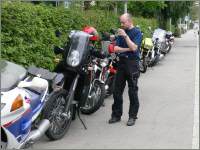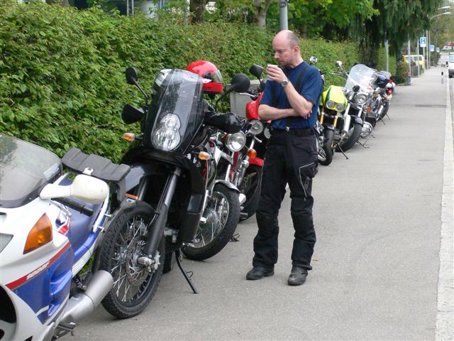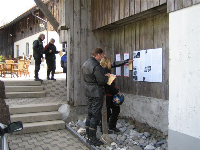 Nachdem der Töff auf dem Parkplatz des Rest. Hirschen parkiert war, mussten alle Teilnehmer zu Fuss in die scharfe Kurve runterlaufen, von welcher sich ein fantastisches Panorama auf den Zürichsee bietet. Aus einigen Bildern mussten die Kirchen am anderen Seeufer erkannt und der richtigen Gemeinde zugeordnet werden. |