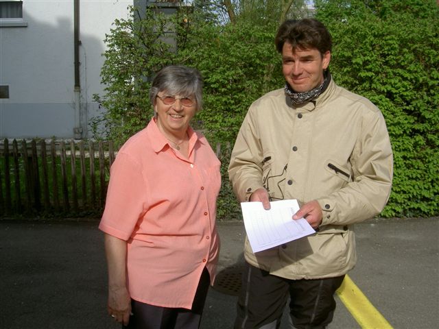 Das Wetter hat viel besser mitgemacht als angenommen. Bis um 11 Uhr schrieben sich 48 Teilnehmer bei Stürmi und Annika ein. Mit diesen zwei fleissigen Helfern machten sich total 50 Personen auf den schönen Weg. |