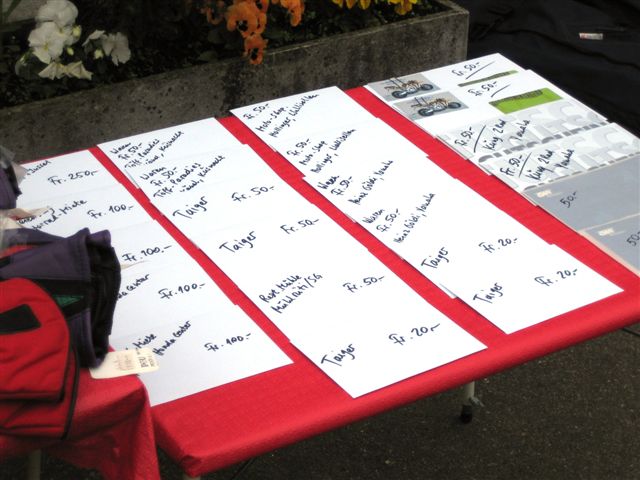 Dank den Helfern klappen die Vorbereitungen hervorragend: Ein eingespieltes Team! Die Parkplätze sind freigemacht, der Kaffee steht bereit und die Gipfeli treffen ein, der Computer gestartet und die kopierten Blätter liegen bereit. Es kann losgehen! |