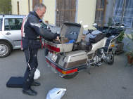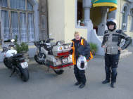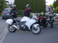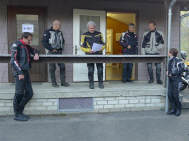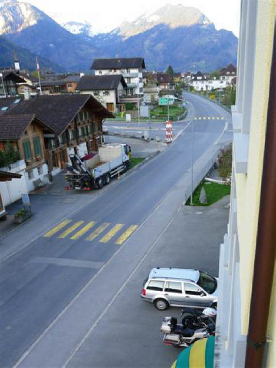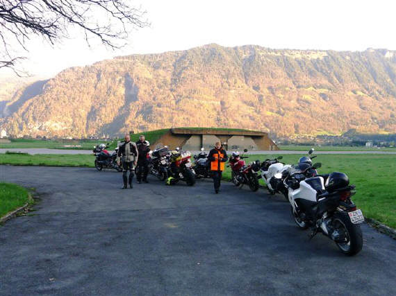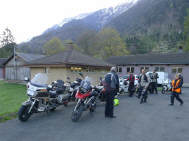 Am Morgen, einem anbrechenden, wunderschönen Tag hatten wir uns um 7 Uhr zum Frühstück verabredet. Draussen glizzerte der Brienzersee, währenddem sich die Sonne anmachte, über die Berggipfel zu scheinen. Um Viertel vor 8 Uhr hatten wir uns mit dem zweiten Teil der Gruppe auf dem Parkplatz beim Hotel Walida verabredet. Dominiks Bord-Thermometer zeigte 5 Grad an - brrrr, aber der Tag versprach schön zu werden. Sigrid hatte vorsorglich die Regenkombi gegen die Kälte montiert. |