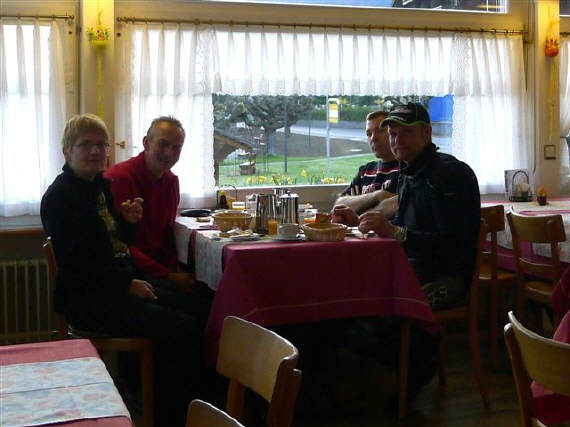 Roland traf erst nach halb 12 Uhr, also kurz vor Mitternacht bei uns im Oberländerhof ein. Wir hatten uns noch mit der Wirtin, Jasmin Gerber zusammengesetzt und ein Gute-Nacht-Bier getrunken. Roli, der «auf Achse» ankam, brauchte einen heissen Tee zum Aufwärmen. |