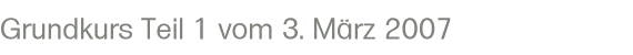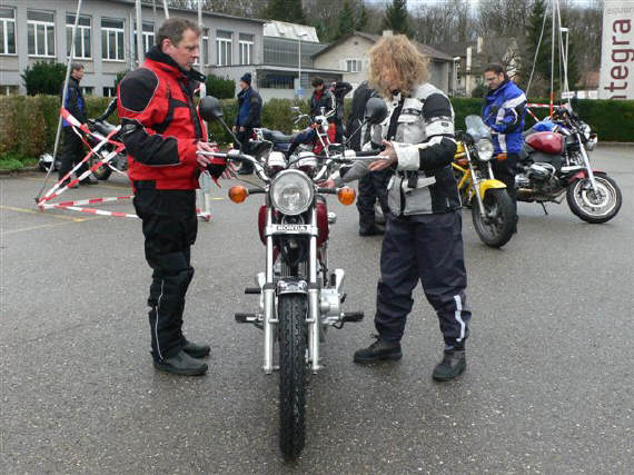 Im Kurs vom 3.+10. März 2007 haben sich insgesamt 10 Teilnehmer eingeschrieben: Vier davon repetierten den Kurs, den sie bereits im letzten Sommer oder Herbst absolviert haben, zwei hatten den Kurs bereits in einer anderen Fahrschule im letzten Jahr absolviert. Vier Teilnehmer waren das erste Mal dabei, alle in der Kategorie A1. (2 mit 50 Kubik, 2 mit 125 Kubik)