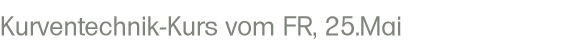Der Kurs vom 25.Mail fand ausschliesslich mit Fahrschülern vom letzten Jahr statt. Da es nur 5 Teilnehmer waren, konnte Roli Schneider den Kurs allein bei wiederum frühlingshaften Temperaturen durchführen.