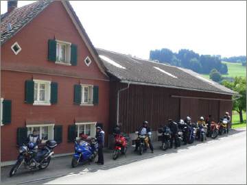Auf der Fahrt, die uns über die «wettersichere» Strecke Fehraltorf-Turbenthal-Bichelsee-Dussnang-Fischingen nach Mühlrüti führte, musste ich meine ausnahmsweise geführte Truppe (drei der sechs Teilnehmer nahmen den Weg selbst unter die Räder) daran erinnern, was bei solchen prekären Wetterverhältnissen einzuhalten ist: Da die Strasse die Wärme (bis 15 Grad) vom Vortag gespeichert hatte, mussten wir, zumindest im Bereich, wo die Autoräder fahren, nicht mit vereisten Stellen rechnen. So konnten wir unser Fahrziel, wenn auch mit klammen Fingern, aber doch mehr oder weniger trocken und sicher rechtzeitig erreichen. |