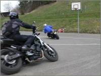 Am Samstag, 31.März 2007 konnte der erste Kurventechnik-Kurs der Saison plangemäss durchgeführt werden. Plangemäss? Schau selbst in die Bilder hinein und dann kannst Du Dir einen Eindruck machen... Bereits auf der Anfahrt hatte das Termometer am Strassenrand in Fehraltorf minus 1 Grad angezeigt, vorher hatte ich den angefrorenen Schnee vom Sattel der Transalp vor meinem Haus gewischt!!! Vier der sechs Teilnehmer waren «Wiederholungstäter»...