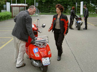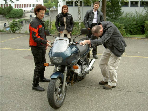Wie wohl leicht zu sehen auf den Bildern, hatten die TeilnehmerInnen alle Hände voll zu tun und der Spass kam dabei nicht zu kurz... Oliver sei gedankt! Feed-back von Reta per E-Mail: «Oliver hat einen wirklich guten Kurs gegeben, und wir waren eine coole Truppe, alle sehr nett. Oliver gibt wirklich gute Ratschläge und hat eine wunderbare Ruhe, das tut sehr gut. Man hat das Gefühl, er versteht genau den Chnopf, den man hat und fühlt sich aufgehoben. Langsam komm ich vom Stress runter, gut sein zu müssen und freue mich an den kleinen Dingen. und der Töff fühlt sich wieder besser an, wir haben uns sozusagen zusammengerauft.» |