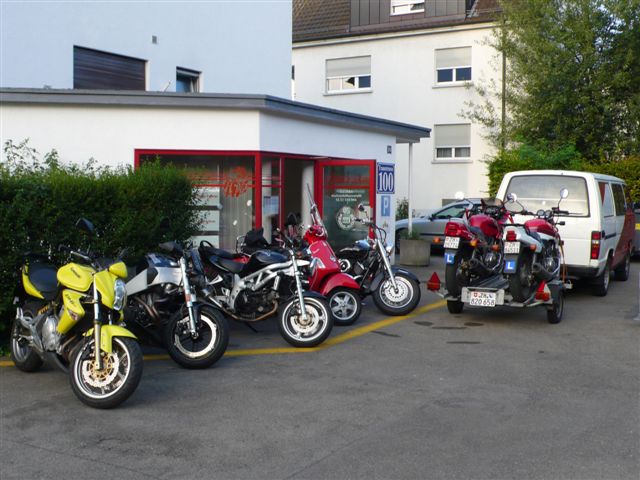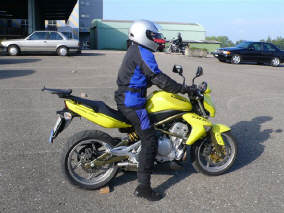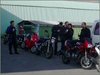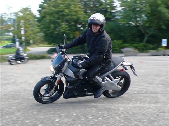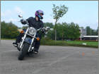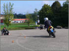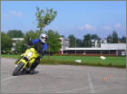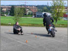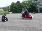 Zu den drei Teilnehmern vom letzten Mal stiessen zwei neue dazu: Sie hatten die Grundschulung bereits in einer anderen Fahrschule absolviert und machten den zweiten Teil mit, da sie diese Übungsinhalte im Programm noch nicht hatten. Um das Maximum aus diesem Unterricht zu profitieren, stellten wir ihnen die kleinen CB 500 zur Verfügung: Einerseits um die Nachteile (zu langer erster Gang für Frühturnen oder Schräglagen-Training), aber auch um Ergänzung zu bieten, weil sich das ABS konstruktiv nicht ausschalten lässt.