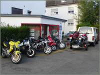Sichtlich gezeichnet genehmigen sich die Teilnehmer eine Auffrischung: Auch wenn sie zum Teil vorbereitet in diese Übung gingen, ging sie nicht ganz stresslos an ihnen vorbei... Immer «locker vom Hocker», das tönt ja gut - aber in den Gesichtern ist was anderes zu lesen, nicht? Danach ging's auf den Bremsplatz hinüber: Die Kamera lag im Bus und deshalb gibt's keine weiteren Bilder. Eigentlich schade, nicht? (Vielleicht sind die Teilnehmer anderer Ansicht, wer weiss!?!?) |