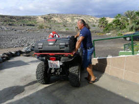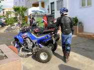 Ja, ich bin schon auf der Insel. Für dein Motorradproblem gibt es verschiedene Lösungen. Doch wie du weisst, ist Motorradfahren nicht gratis. (...) Möchtest du eventuell mal Quad fahren? Am besten wir treffen uns bald nach deiner Ankunft mal in El Médano gleich beim CALIMA café (ehemals Harley Bar) an der Ecke bei der Plaza direkt am Strand, um uns kennenzulernen. |
