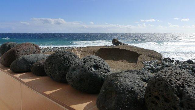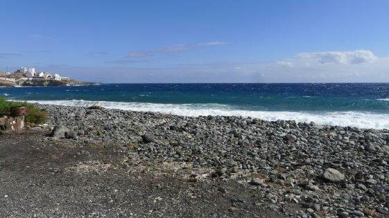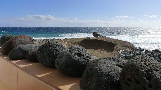 In der Zwischenzeit macht es sich Sigrid auf der Terrasse von Steff's Ferienwohnung bequem: Ein hübscher Flecken, so direkt am Meer, bei schönem Wetter wenigstens ... Las Maretas liegt nur 7-8 Autominuten von El Médano (Betonung auf Me) entfernt, wo es einen wunderschönen Sandstrand und alles gibt, was man so braucht. In der unmittelbaren Nachbarschaft gibt es eine Deutsche, die ein Restaurant «Bei Marlies» führt.