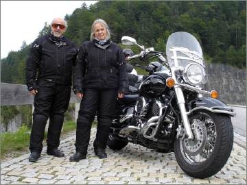 Dieses kam und man hievte den Drag Star auf die Ladefläche. Die Gendarmerie war rasch zur Stelle und nahm alles auf. Kein Fremdeinfluss, die Strasse war mit Erde und Kieselsteinen verschmutzt gewesen. Vreni sagt, sie hätte etwas gesehen aber es war zu spät um zu warnen. Wir beide waren dreckig wie die Schweine und durften so nicht einsteigen. Wir reinigten notdürftig Jacken und Hosen und stiegen dann ins Bergungsfahrzeug ein. Die Kollegen kamen noch bis zur Bergungsfirma mit und mussten sich dann verabschieden, man musste zum Mittagessen rechtzeitig "ennet den Bergen" sein, was vermutlich der Grund für das Tempo war. |