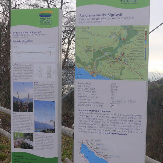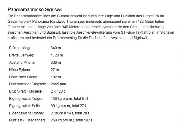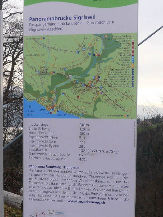 Ebenfalls im Angebot war die Panoramacard Thunersee, die die Gratis-Benützung von Bus und Postauto zuliess, was wir aber nicht nutzten. Den Besuch der Panorama-Brücke in Sigriswil liessen wir uns aber nicht entgehen (auch in der Karte inbegriffen) und wagten uns auf die Überquerung der 340 Meter langen Hängebrücke, die mit 182 Meter über Grund wahrlich ein nicht alltägliches Erlebnis bietet. Zum Glück verpassten wir dieses einmalige Erlebnis nicht, bevor wir uns am Montagabend auf den Rückweg machten.