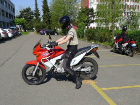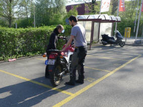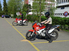 Nächste Übung: Die Maschine im Gleichgewicht vorwärts, später rückwärts schieben - immer schön im Gleichgewicht, dann bleibt sie leicht! |