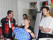 Kurz vor sieben Uhr beginnt es tatsächlich zu regnen: Doch es sind schon viele eingetroffen, die sich diesen Abend auch vom nassen Wetter nicht vermiesen lassen wollen, darunter 7 (!) «L»-FahrerInnen! |