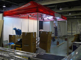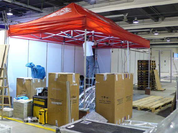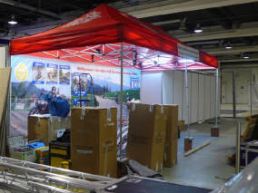 Es ist vollbracht! Wir haben den Stand bereit, noch ein bisschen Beschriftung morgen früh und dann darf es losgehen! Ich werde noch ein Bild von der Crew veröffentlichen, sobald ich ein Bilchen habe. |