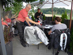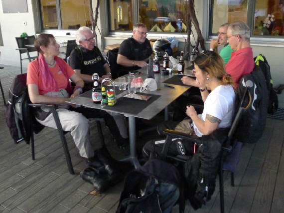 Um 19 Uhr waren wir zu viert, neben Renato als Tourguide trafen noch Romeo, ein aktueller Fahrschüler sowie Claudio, der das Monster-Baby seiner Freundin spazieren führte, ein. Auch wir fuhren durch die Stadt, in sensationellen 15 Minuten über den Albisriederplatz zur Waldegg, wo wir eine 10minütige Pause einlegten. Leider kam niemand mehr und so starteten wir zu viert, von Renato angeführt, über Muri, Schongau, Müswangen und schliesslich Mosen in Richtung Beromünster. Es war schon mehr als Viertel vor neun Uhr, als wir am Ziel eintrafen. Wir installierten uns am Nachbartisch, die andern waren bereits am essen.