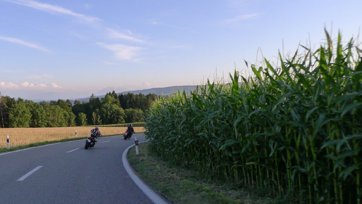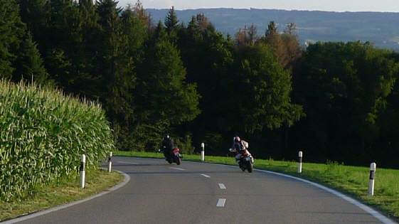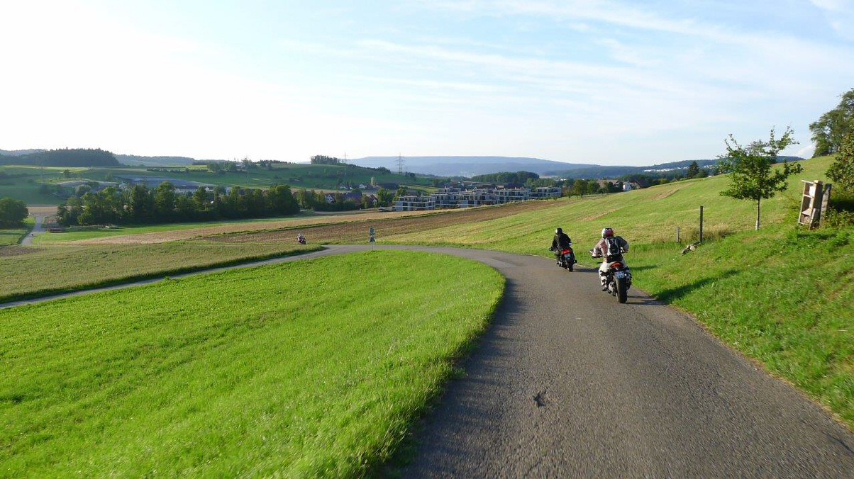 Die zweite Abfahrtsmöglichkeit gibts um 19 Uhr mit mir und Renato an der Tramstrasse 109. Wir fahren über die Waldegg, wo wir diejenigen mitnehmen, die sich dort um 19.30 Uhr für eine zusätzlichen Abfahrtsmöglichkeit besammeln. Wir müssen etwas direkter fahren, aber in 1 Stunde gibt es viele Kurven über den Lindenberg nach Hitzkirch und Beromünster.