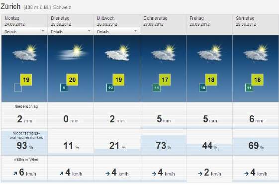 Detail-Aussichten ZH für Donnerstag, 27. Sept. |