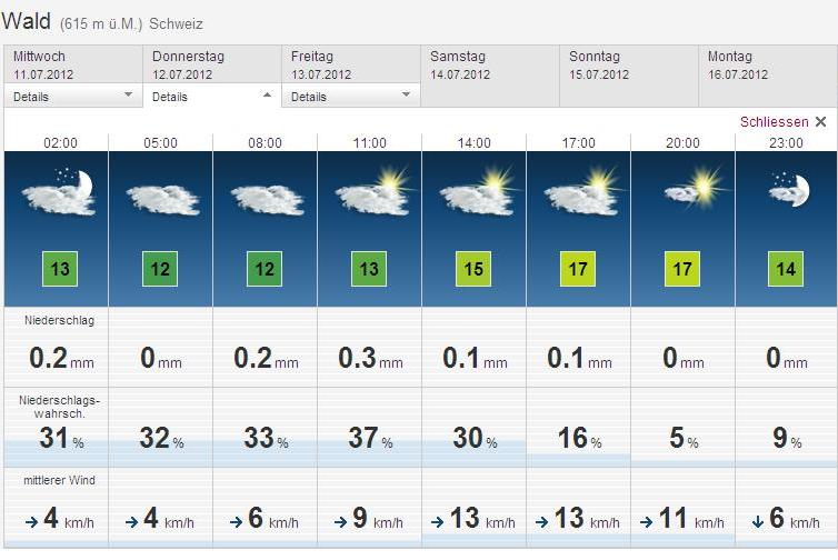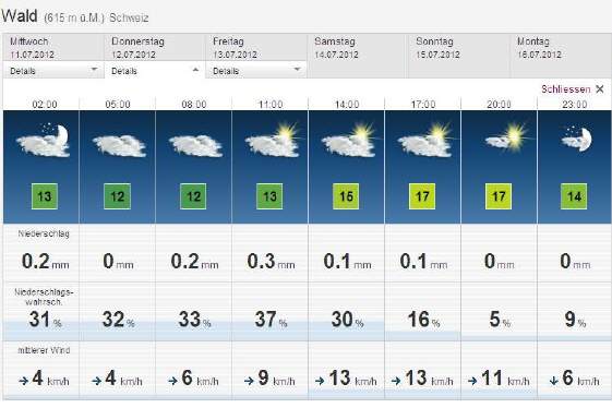 Wetterdetails prognostiziert von Meteo Radio DRS |