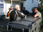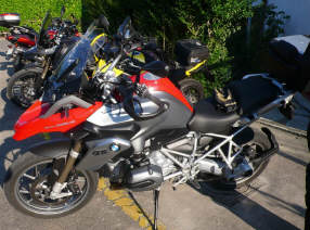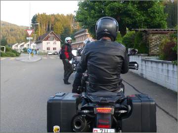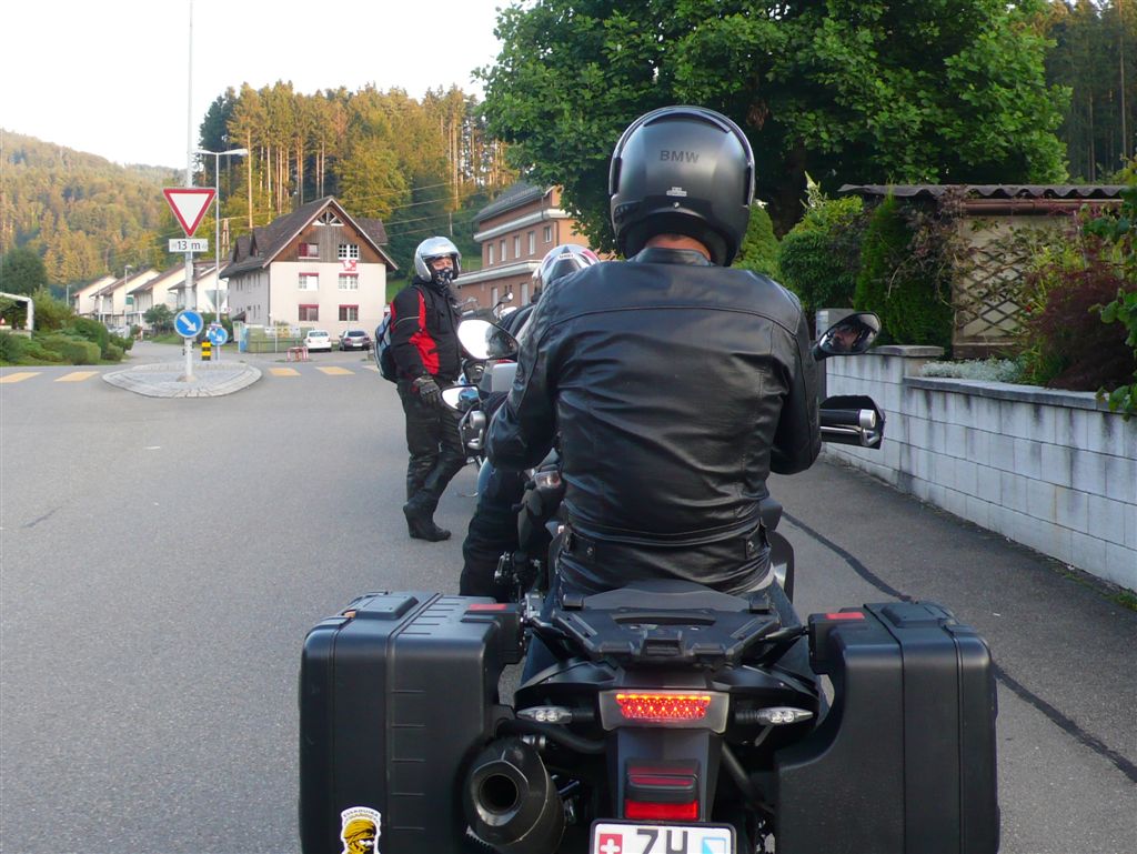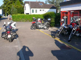 Sigrid und ich waren bereits im Wallis, als sich die Gruppe an der Tramstrasse besammelte. Ich liess extra einen Fotoapparat zurück, so weiss ich nicht, wer die Bilder geschossen hat. Der Vorteil daran ist, wenn man die Motorräder fotografiert, dass sie nicht wegschauen ... Aber offenbar gab es auch noch Leute dazu, insgesamt sollen es (mit Dominik gezählt) deren 7 gewesen sein.