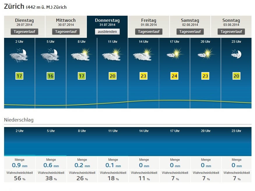 Detail-Aussichten ZH für Donnerstag, 31.Juli 2014 |