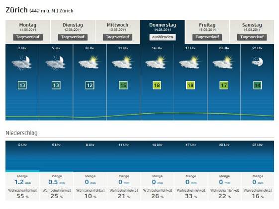 Detail-Aussichten ZH für Donnerstag, 14.Aug. 2014 |