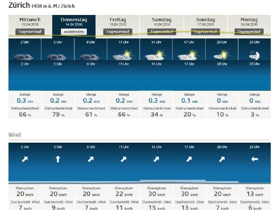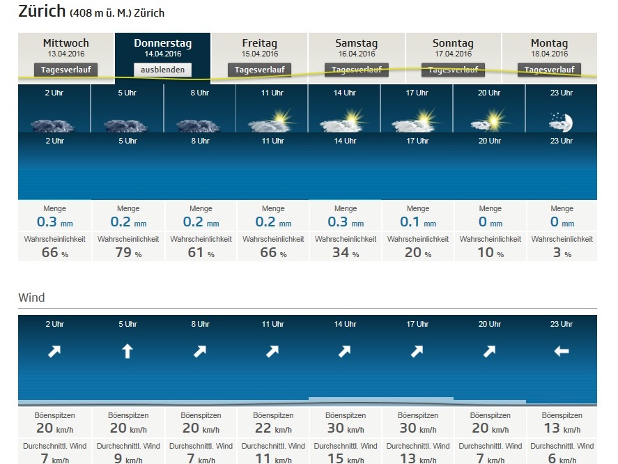 Detail-Aussichten ZH für Donnerstag 14.April 2016 |