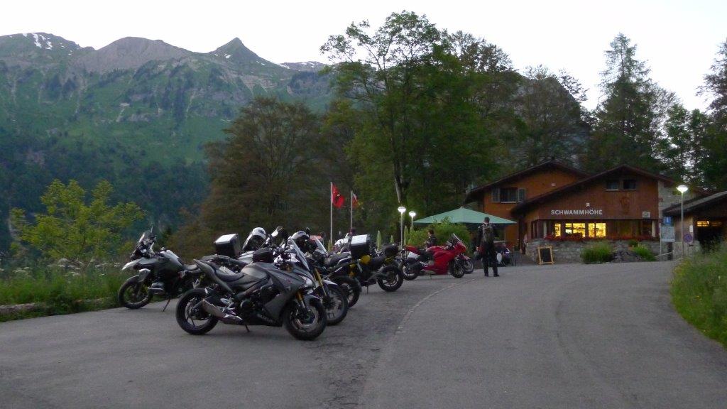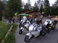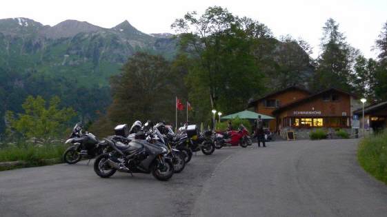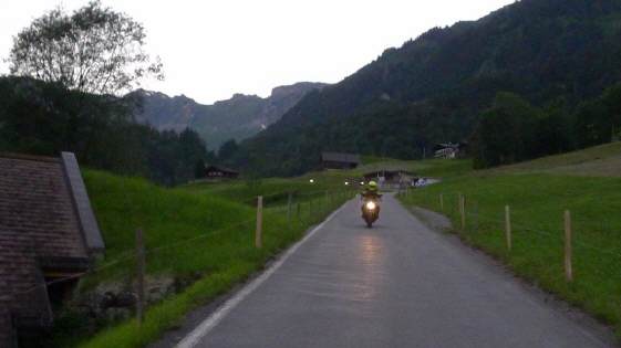 Wow, das war eine Show! Ganze 31 Personen, verteilt auf 28 Maschinen trafen im Zielrestaurant in der Schwammhöhi ein. In total 4 Gruppen fuhren wir auf unterschiedlichen Wegen in die Innerschweiz, erlebten die Kuh-Schweiz hautnah (die Gruppen mussten wegen Viehtrieb warten!) und es war bereits dunkel, als ich mit meiner Gruppe und meinem 70jährigen Passagier in der Schwammhöhe eintraf. Gegen halb elf Uhr starteten wir die Rückreise und in einer gigantischen Lichterkette fuhren wir den Wald hinunter nach Glarus. Dann strebten alle dem Ausgang des Zigerschlitzes zu und dort verliefen sie sich auf unterschiedlichen Wegen in Richtung «nach Hause»! |
