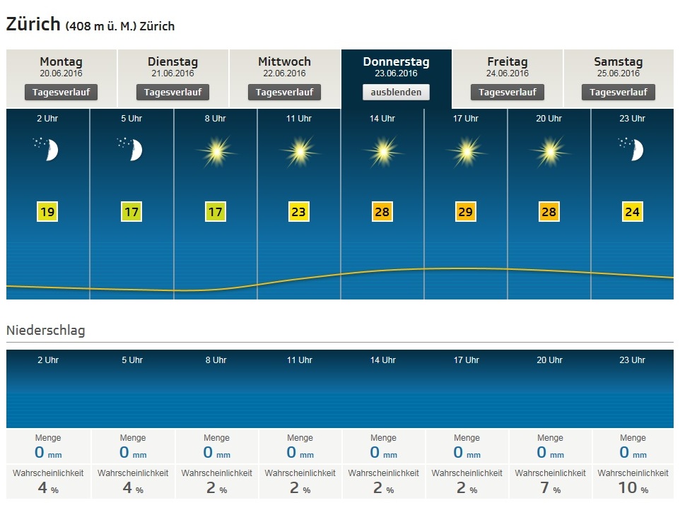 Detail-Aussichten ZH für Donnerstag 23.Juni 2016 |