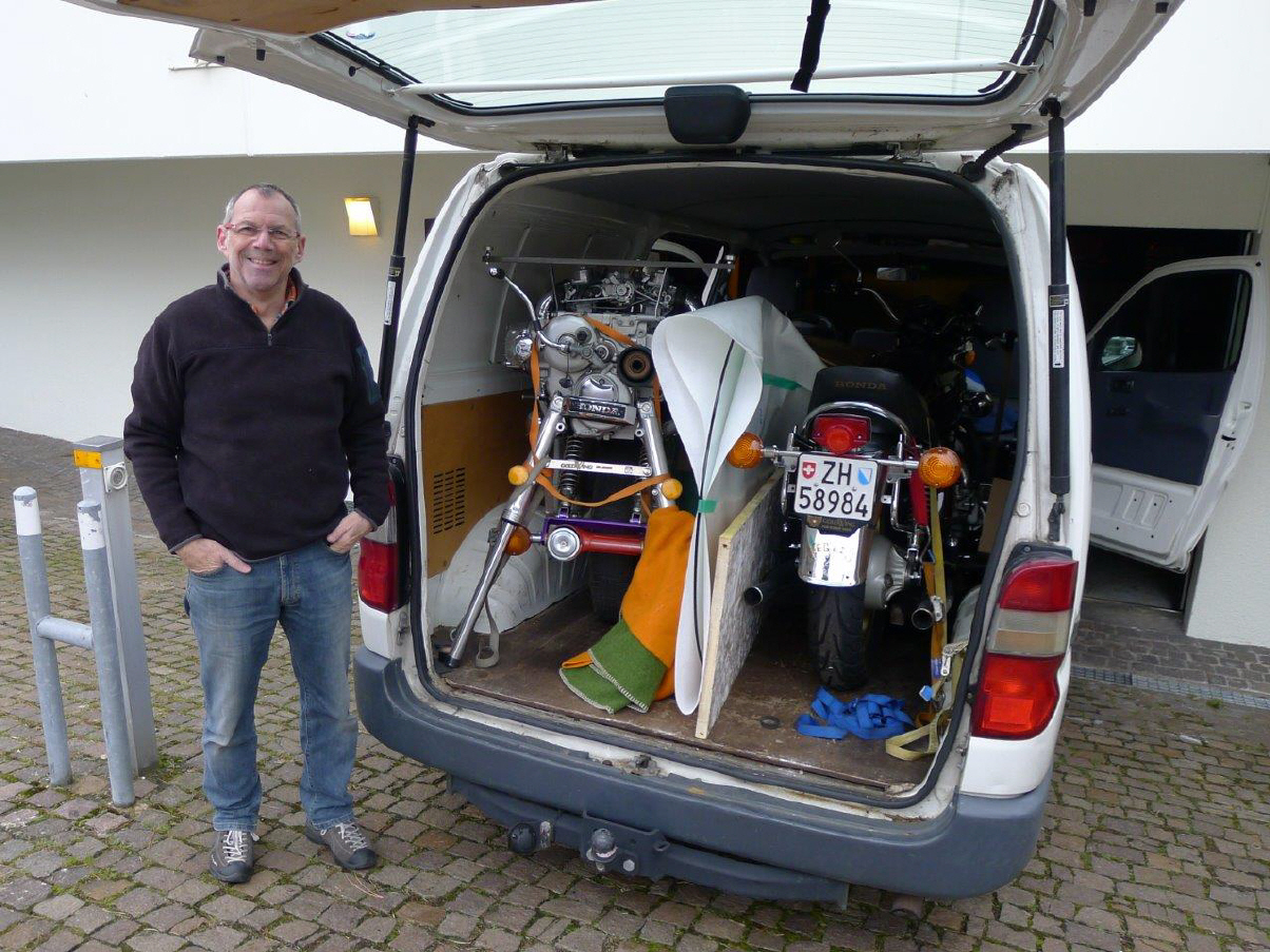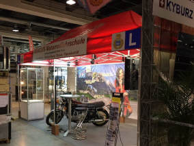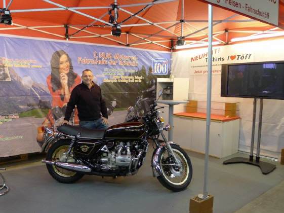 Der Dienstagvormittag stand ganz im Zeichen von «GoldWing»: Markus Egli ist stolzer Besitzer zweier Original-GL1000 LTD von 1977. Eine davon steht auf dem Stand des GoldWing-Clubs, In Halle 6 Stand E10. Die andere mit einem Tacho-Stand von nur 181,1 km ist normalerweise die Dekoration im Geschäft von Markus & Lilo's Tochter Michèle. Diese Maschine steht als Dekoration auf meinem Stand aus einem ganz besonderen Anlass: Am 6.Mai 1978, das sind dann genau 40 Jahre her, kamen wir zum ersten Mal zusammen im Kreis des zu gründenden GoldWing-Clubs, anlässlich der Hochzeit von Markus und Lilo. Und in der Halle 1 wird die ganz neue GoldWing-Tour von Honda erstmals in der Schweiz präsentiert. Am Nachmittag musste ich weitere Materialtransporte ausführen. |
