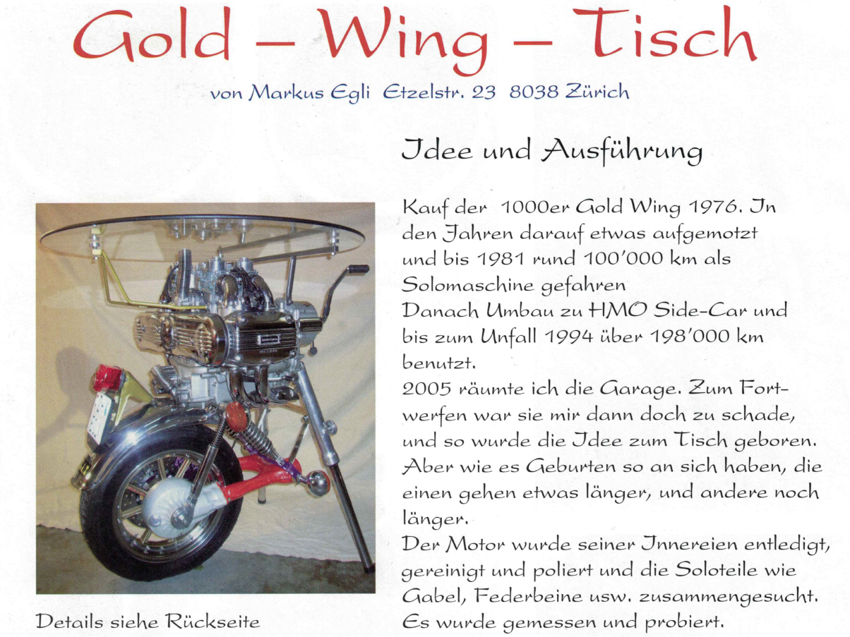 Aus einer abgewrackten GoldWing wird ein Tisch! |